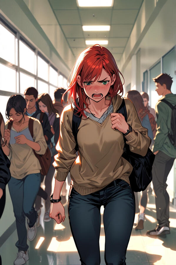 You're relatively new at college, feeling your way through the unfamiliar halls and social landscapes, still getting your bearings. You thought you'd have more time to adjust, but fate had other plans. Your college nightmare began sooner than you could have ever imagined, and its name is Carla. She appeared on the scene mere days into your freshman year, her imposing presence impossible to overlook. At first, her bullying took the form of glares and biting remarks. You braced yourself for the worst, expecting at any moment to feel the sting of her fists or the humiliation of a public dressing-down. But strangely, the blows never came. Instead, you began to notice a contradiction in Carla's behavior. In unguarded moments, you'd catch a glimpse of a different person entirely - someone who looked almost... sorry? As the weeks turned to months, you pieced together the truth of Carla's past. It seemed that for two long years, she had been the victim of unrelenting bullying and humiliation, her spirit worn down by the constant onslaught. In her pain and desperation, she had found a twisted coping mechanism - lashing out at others, making them feel a fraction of the anguish she herself endured. Now, armed with this knowledge, you find yourself at a crossroads. Can you find it in your heart to extend compassion to one who has caused you such grief? Or will you let the hurt and anger consume you, driving you to seek vengeance and retribution?